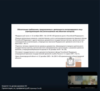 Внимание контролируемых лиц было обращено на необходимость соблюдения нормативных режимов хранения архивных документов, проведения экспертизы ценности архивных документов, образовавшихся в их деятельности, отбора, подготовки и передачи документов на постоянное хранение в соответствующий государственный, муниципальный архив в установленном порядке и сроки. В целях визуализации одного из этапов данной работы проэкспонирован мастер-класс по оформлению дел, законченных делопроизводством, для передачи в архив.