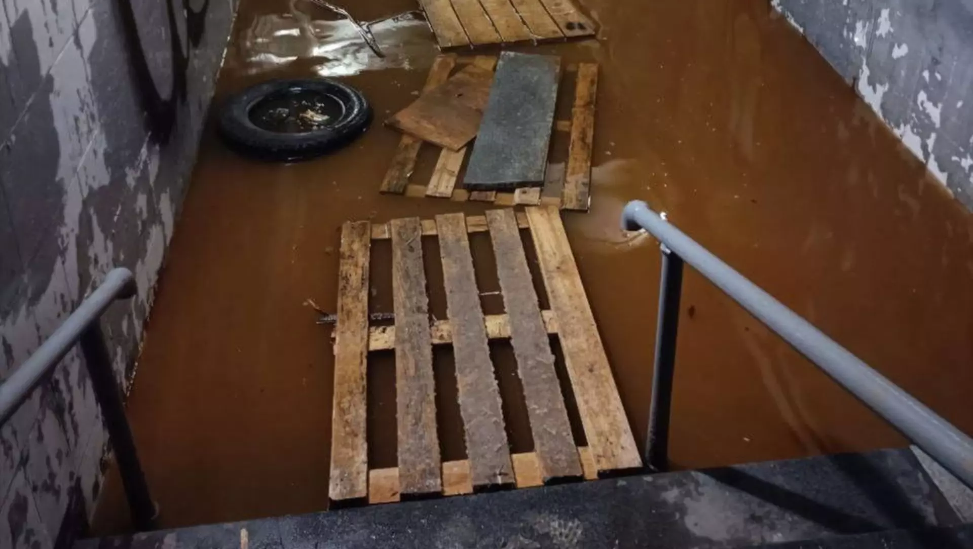 Дно тоннеля, ведущего к станции «Автозаводская — Сортировочная», превратилось в гигантскую лужу, информируют подписчики Telegram-канала «Нижний №1».