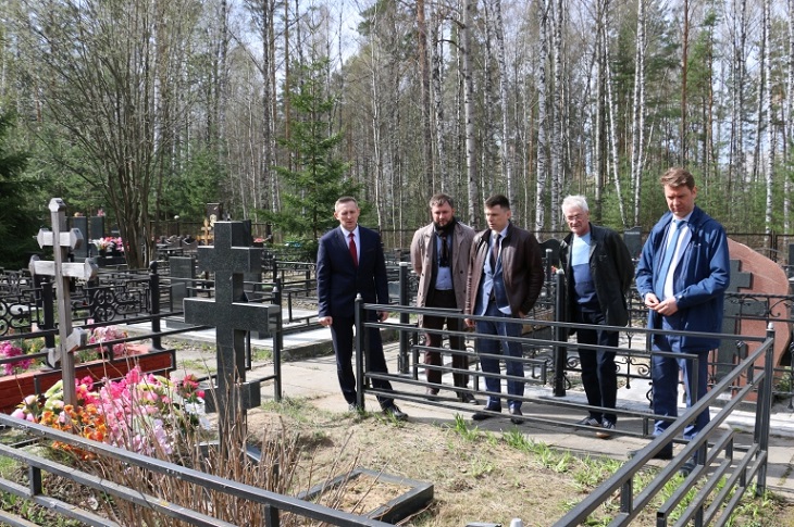 К могилам А.П. Солодовникова и А.Т. Амеличева возложили цветы руководитель думы Антон Ульянов, заместитель председателя думы Андрей Немчинов, глава города Алексей Сафонов, депутат семи созывов Иван Ситников.