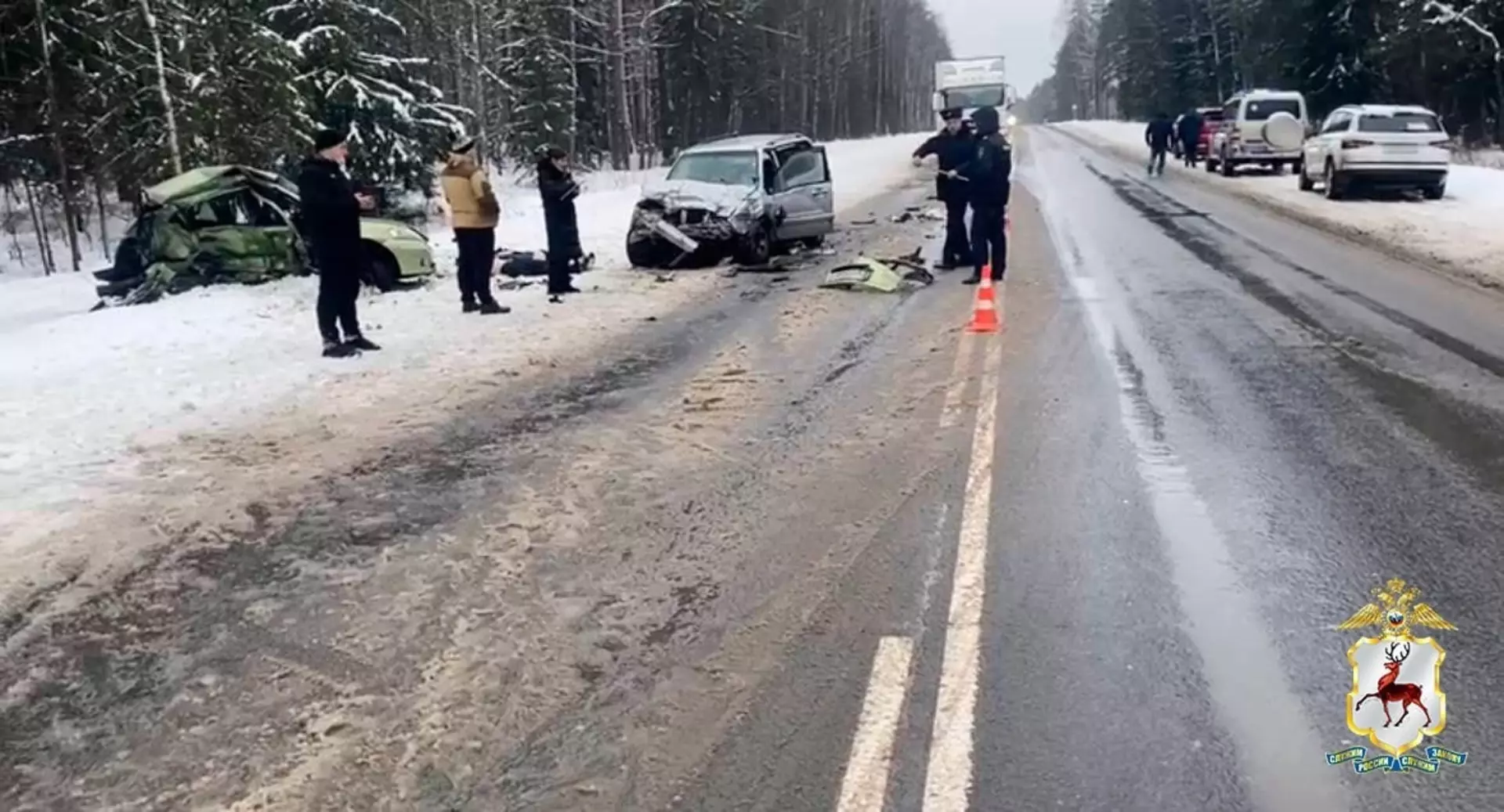 Обгон стал причиной смертельного ДТП в Семеновском округе. Фото: Пресс-служба ГУ МВД России по Нижегородской областиРанее было опубликовано видео с места страшной аварии около поселка Осинки в Семеновском округе.