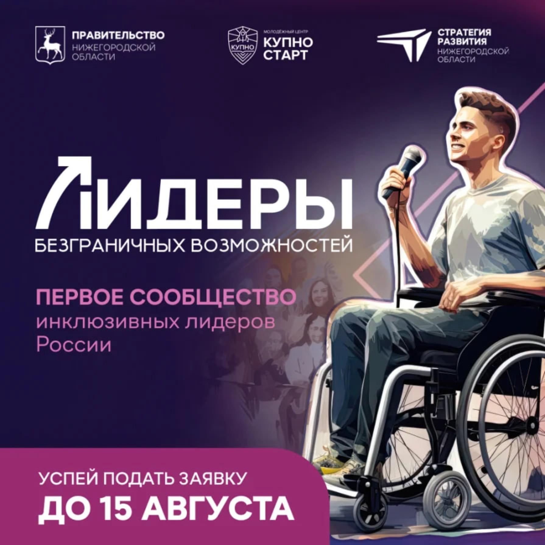 В Нижегородской области стартовал проект «Лидеры безграничных возможностей» 1 июля начался отбор участников на инклюзивный проект «Лидеры безграничных возможностей».